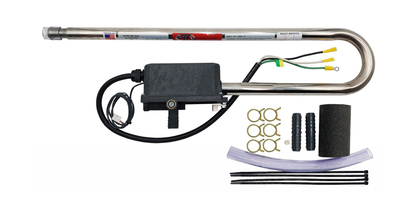 **Comes with A 3/4 Barb Fitting On The Heater Barb Fitting. April 2008 And Earlier Models Have A 1" Comes With Adapter Fitting, Vinyl Tubing, Internal Pressure Switch And Clamps.